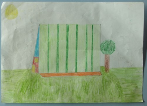À la suite de l’entretien avec Mme Arellano, Anna, en 6E, a imaginé une structure de jeu en forme de grande glissade. Au dos du dessin, sa description.