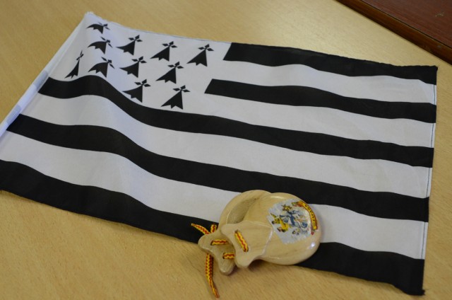 Sur la grande table de travail, une paire de castagnettes déposée sur un lit de drapeau. Julia les a disposé en arrivant dans l’atelier, composant avec soin une drôle de nature morte. Elle nous raconte sa mère bretonne et son père de Teruel (Aragon), en Espagne. Elle dit que la mixité ne date pas d’hier, que depuis bien longtemps les peuples voyagent et se mélangent.