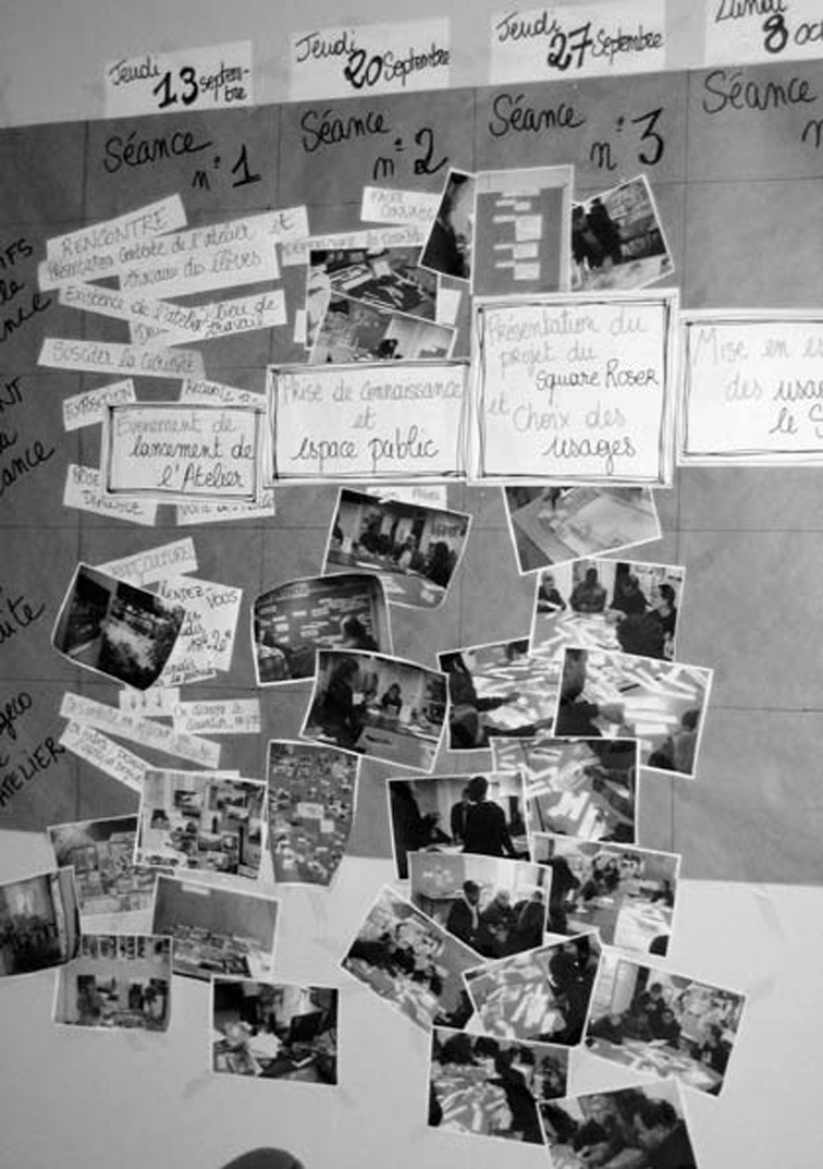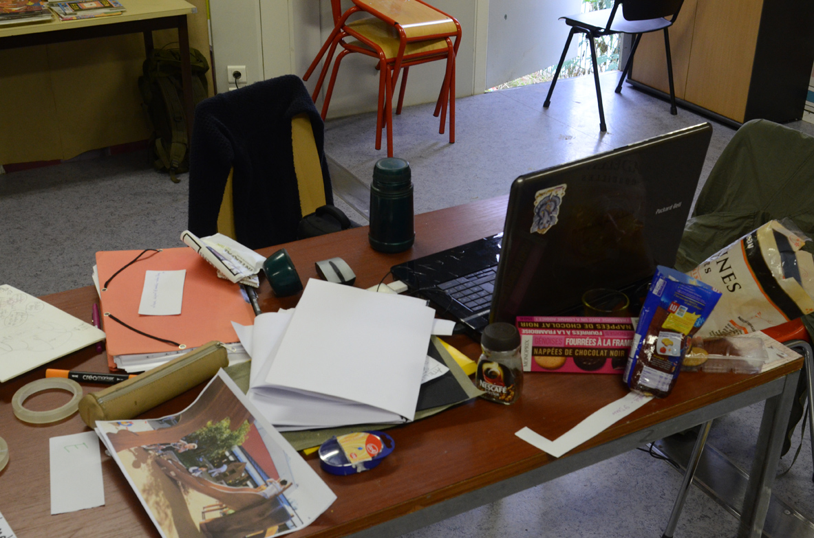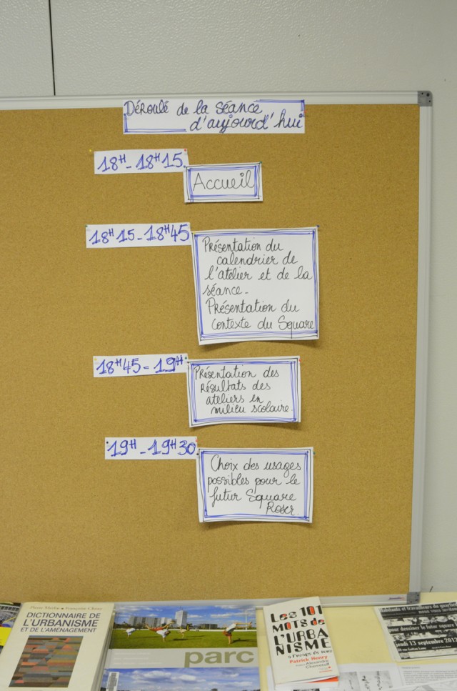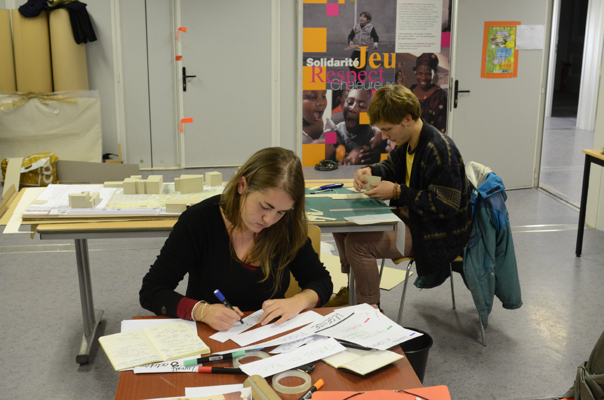 L’enjeu du projet est autant la co-conception d’un espace public que l’élaboration d’une pédagogie du projet urbain à destination des habitants. Dans ce cadre, la question de l’information est stratégique. Lise et Marc s’emploient, entre les séances d’atelier, à imaginer les outils qui permettront à chacun de se saisir des contraintes et des ressources du projet. Il s’agit donc d’investir l’Algeco, de le transformer en une zone temporaire de création urbaine.