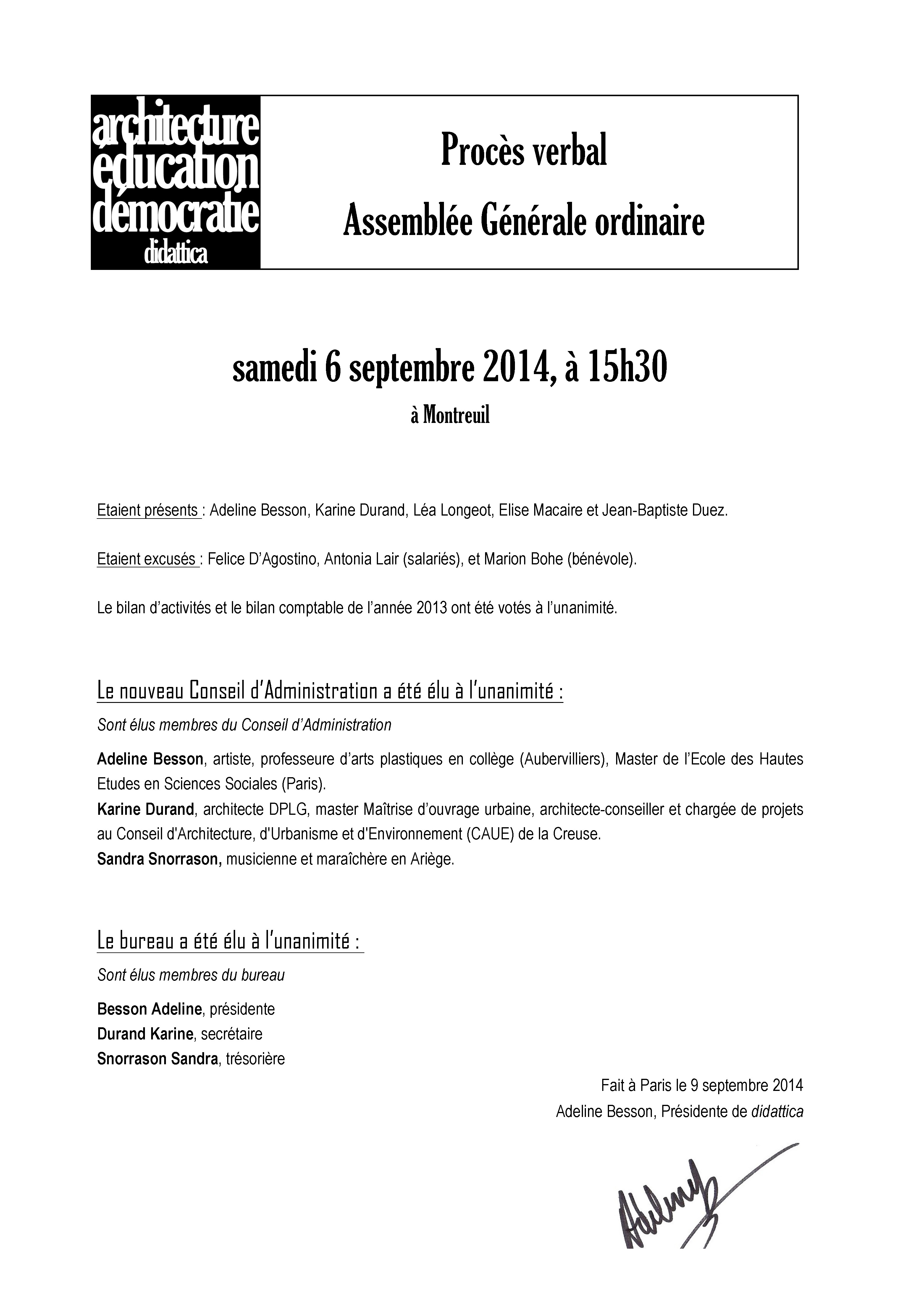 procès verbal de l’Assemblée générale ordinaire de didattica