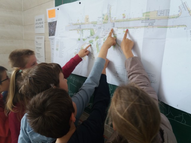 Nous intervenions à un moment où le projet était déjà défini dans le périmètre de la Place-nid élargie et se réalisait, donc on a fait interagir les enfants dans la limite de ce qui allait être réalisé et plus particulièrement sur le projet d’affichage de petits piverts sur les deux passages piétons du futur aménagement et autres carrefours (projet qui prendra une forme de totem).